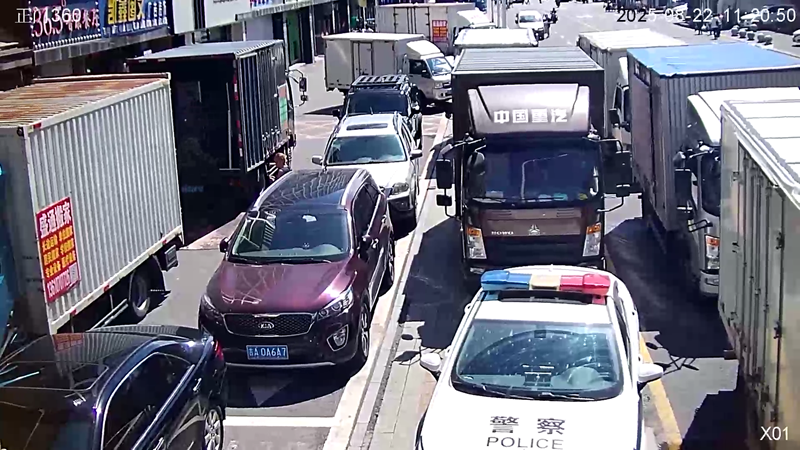 停在汇圣大厦门前的警车和箱货(举报人提供)